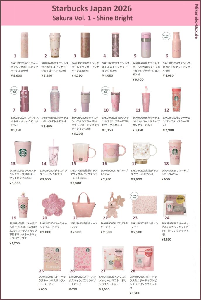 Es geht wieder los! Die Starbucks Sakura Kollektion 2026 steht in den Startlöchern und wir möchten Euch gern wieder helfen an die tollen Sachen aus Japan zu kommen. Diese Kollektion ist immer sehr beliebt und vor allem in den Großstadtregionen oft schon am Release-Tag vergriffen. Wir stürzen uns auch dieses Jahr wieder für euch in den Kampf. Hier findet ihr alle Informationen dazu.